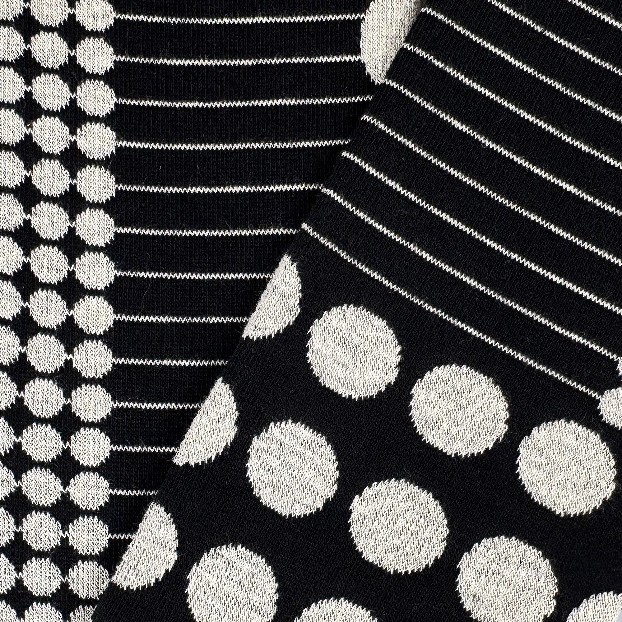 片足は、大胆なドットの配置と繊細なストライプがモダンなコントラストを演出し、