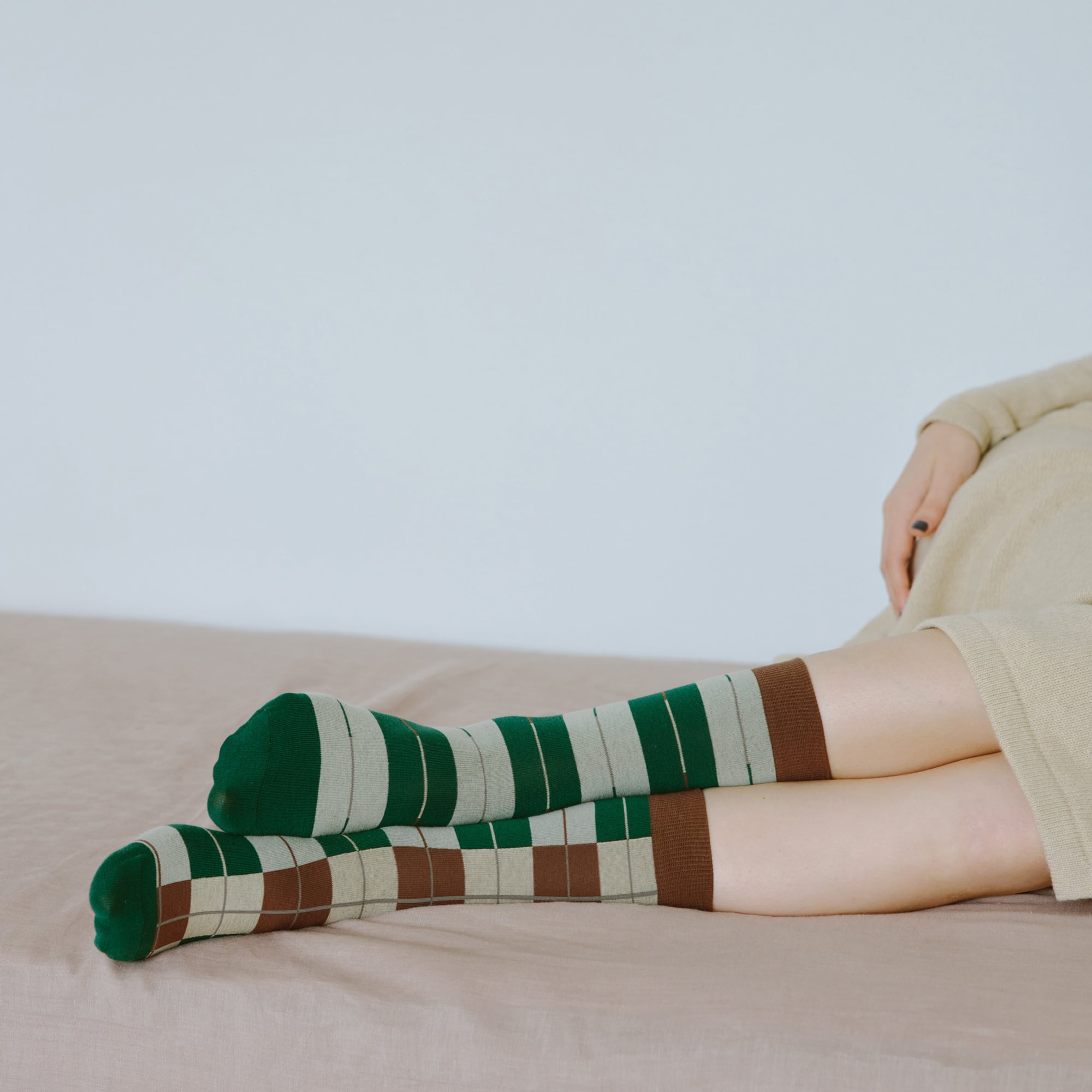 もう片足は、繊細な太さのボーダーがリズミカルに並び、