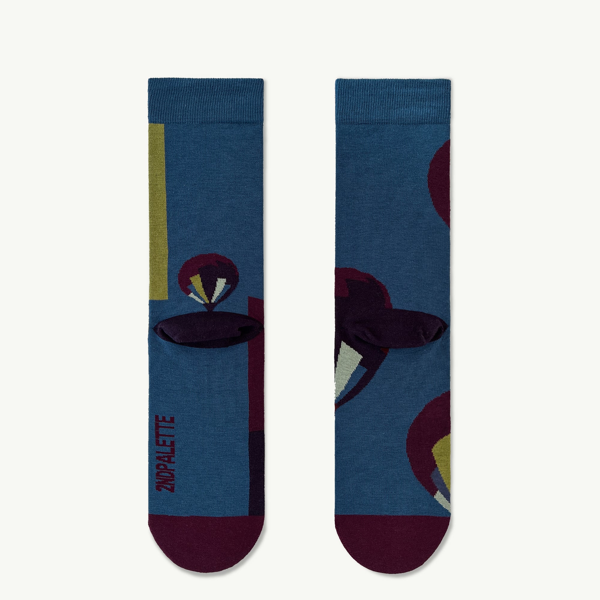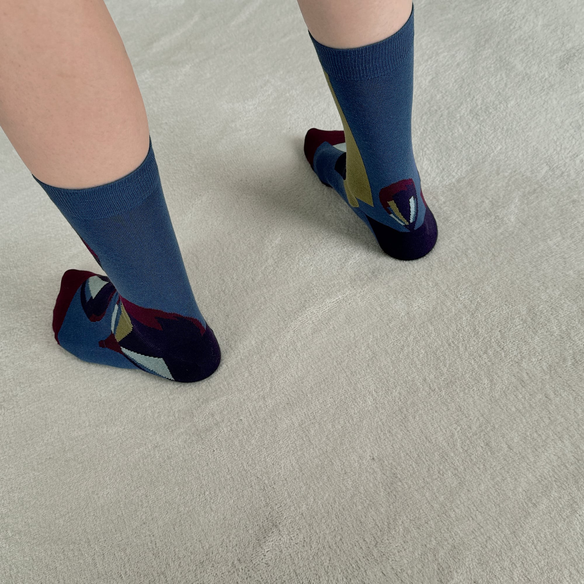 もう片足は、景色を抽象化したようなブロック柄が連なり、