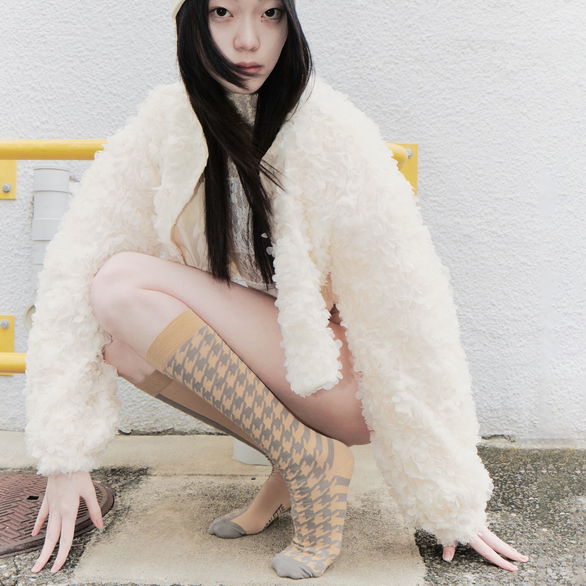 洗練された千鳥格子の重なりが美しいハイソックス。